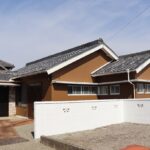 外観にはクリーム色をベースに屋根は緑色、正面には木を下見板張りにて施工しました。